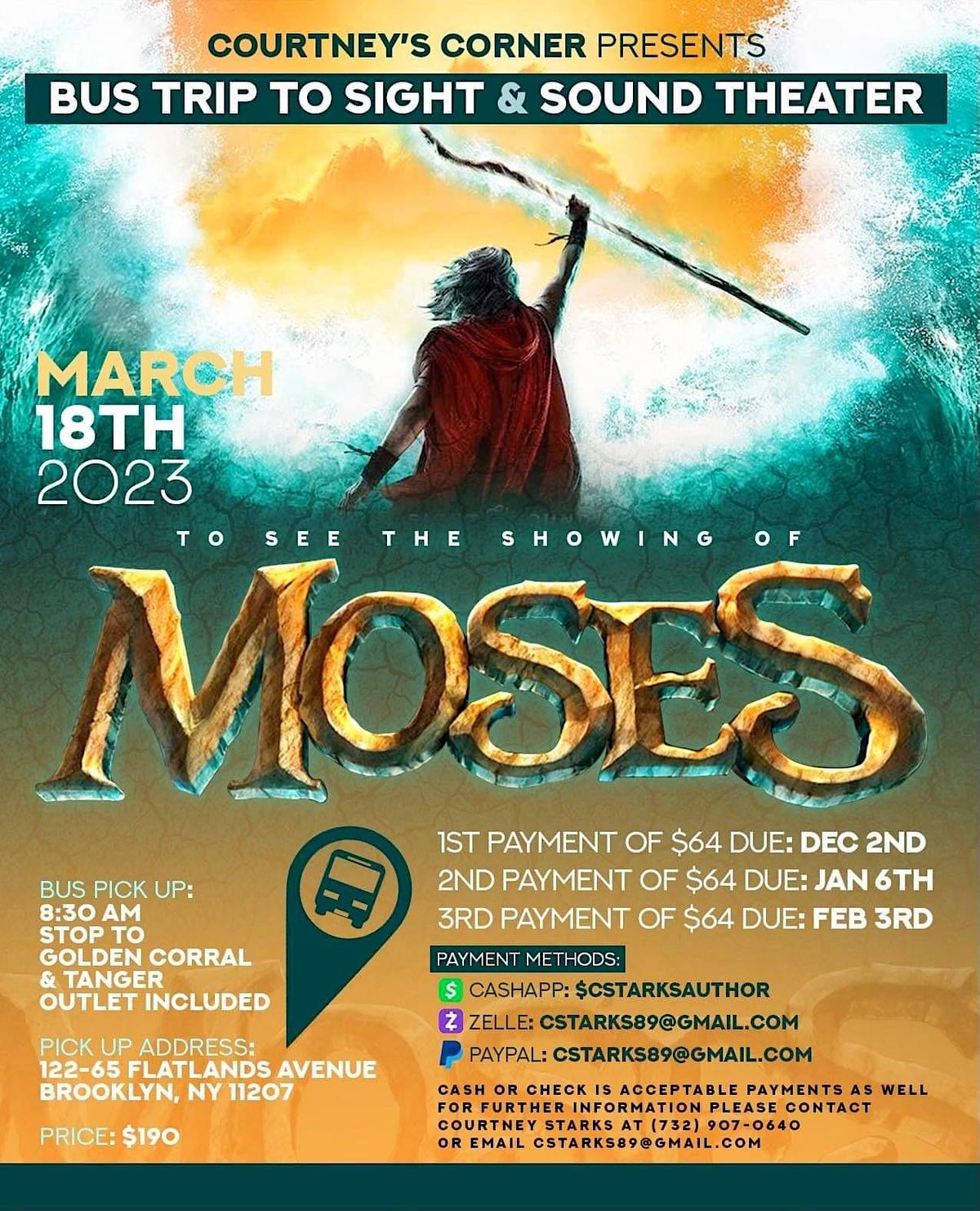 Bus Trip to Sight & Sound Theater To See The Showing Of Moses, Sight, Experience miracle of christmas as it comes to life on stage with massive sets and live animals in a cherished holiday production from sight & sound theatres.